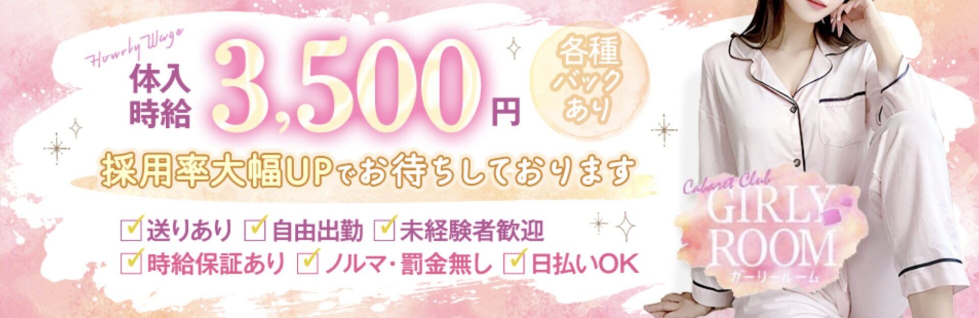 本入店時給 | 時給3500円〜6000円以上可能※各種バックあり |